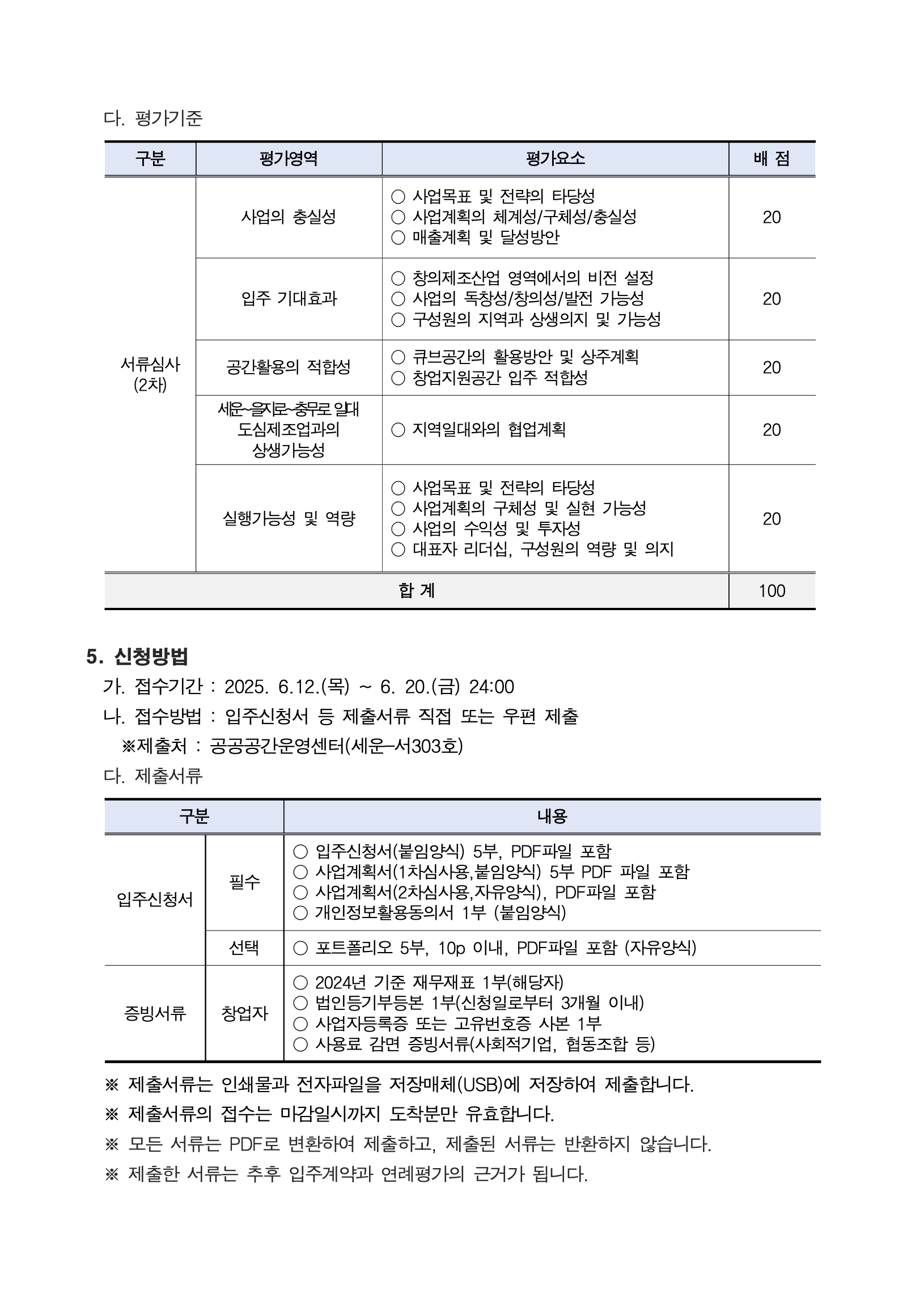 [발표]2025년 세운메이커스큐브 입주사 모집결과 공고